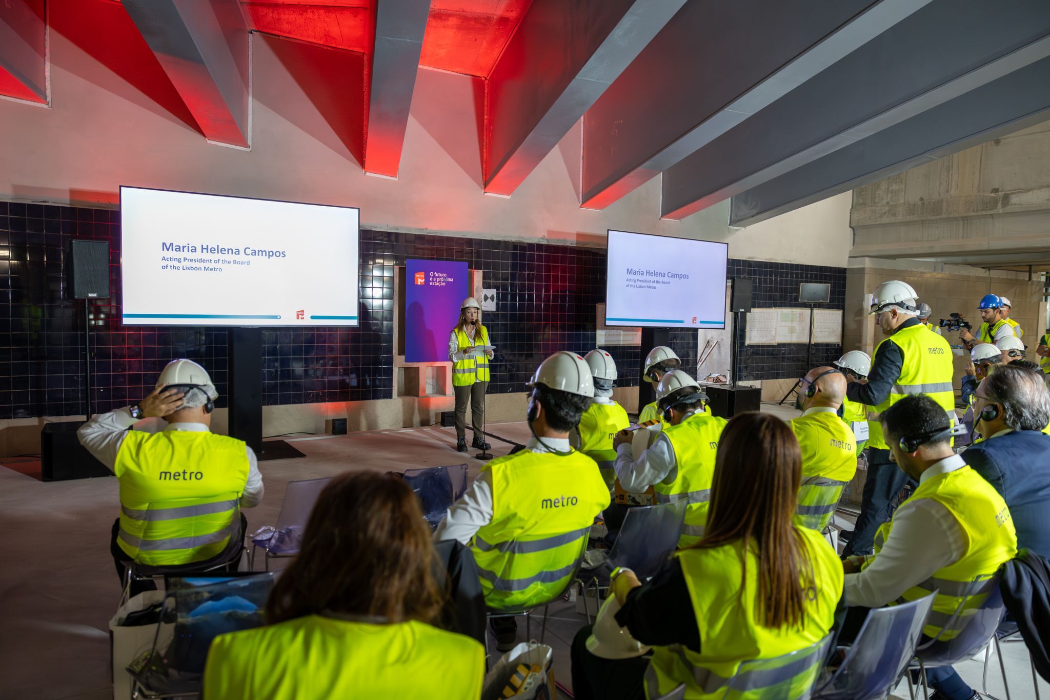 Na sua intervenção, Maria Helena Campos sublinhou o papel do Metropolitano de Lisboa como referência nacional e internacional, destacando o compromisso com a inovação e sustentabilidade, enquadrado num plano de investimentos de 1,6 mil milhões de euros até 2029. Este investimento contempla a expansão da rede, a aquisição de novos comboios e a modernização tecnológica do sistema, com o objetivo de melhorar substancialmente a qualidade do serviço prestado.