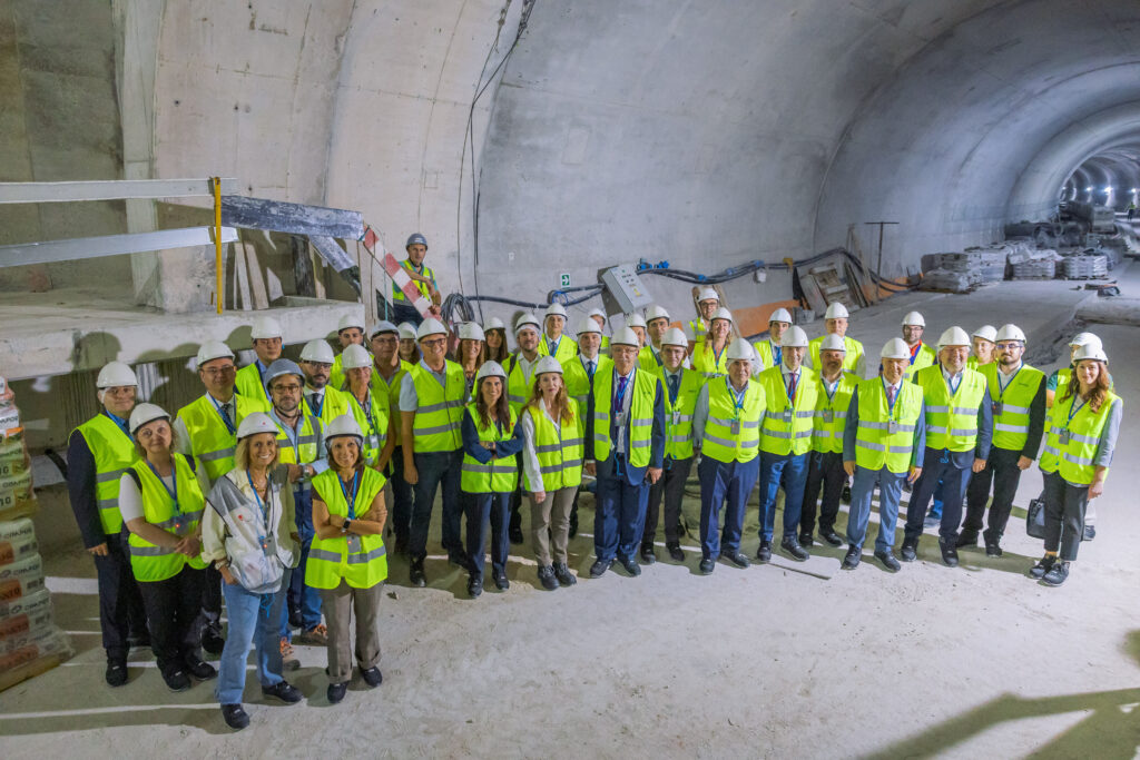 A visita prosseguiu com uma apresentação técnica da Linha Circular, conduzida por Rui Pina, Diretor de Obra, seguida de uma deslocação ao interior do novo túnel entre as futuras estações Estrela e Santos. O percurso, com cerca de 700 metros, permitiu à delegação conhecer de perto os métodos construtivos, os turnos de trabalho, o número de operários envolvidos, os membros do consórcio responsável pela empreitada, os desafios técnicos enfrentados e o impacto global dos investimentos.